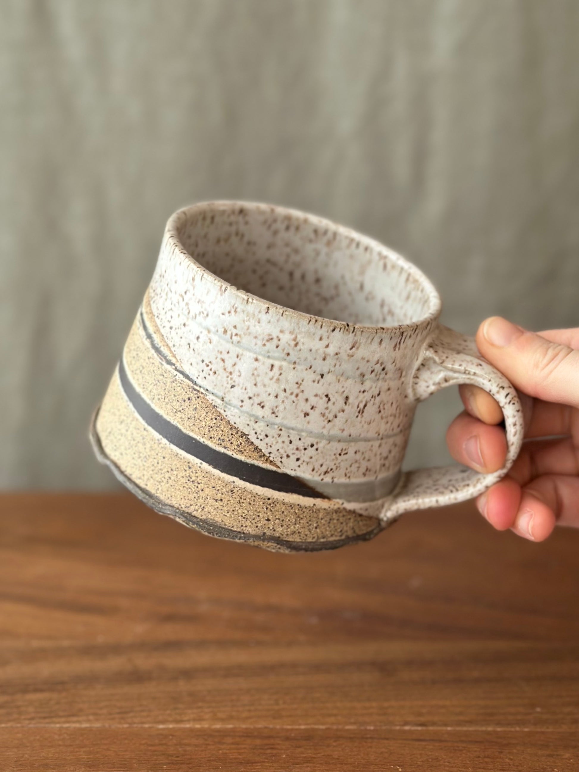 Handcrafted from three types of clay and finished with a beautiful eggshell glaze, this stoneware mug is sure to stand out. Each one is uniquely marbled for a one-of-a-kind piece (photos are close but please expect variations in the pattern)